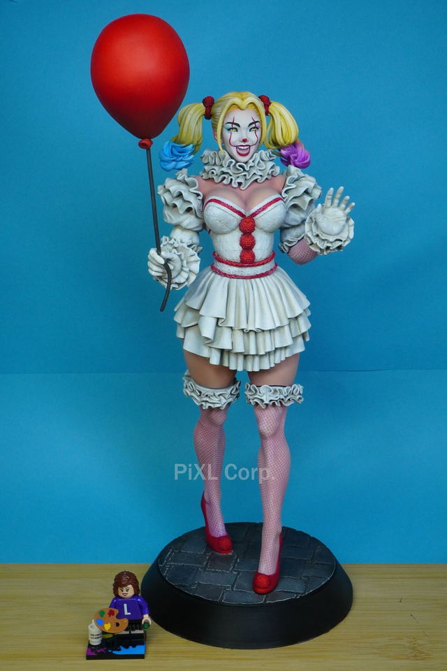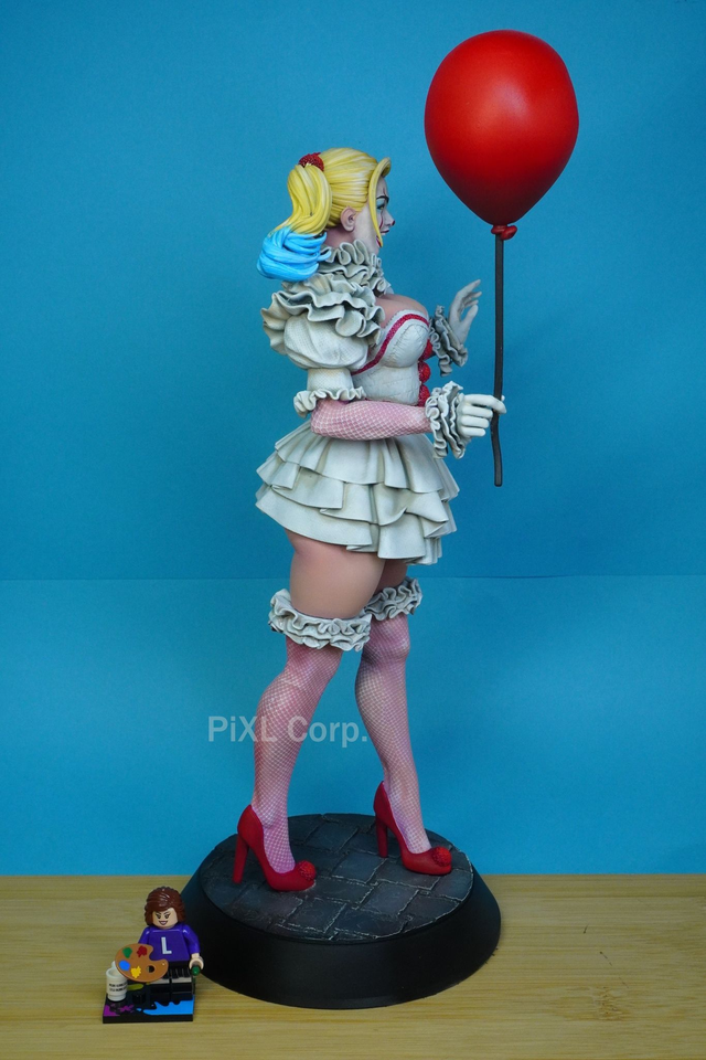 Figurine de collection Harley Quinn, version Pennywise en taille 1/6e (environ 32cm de haut)